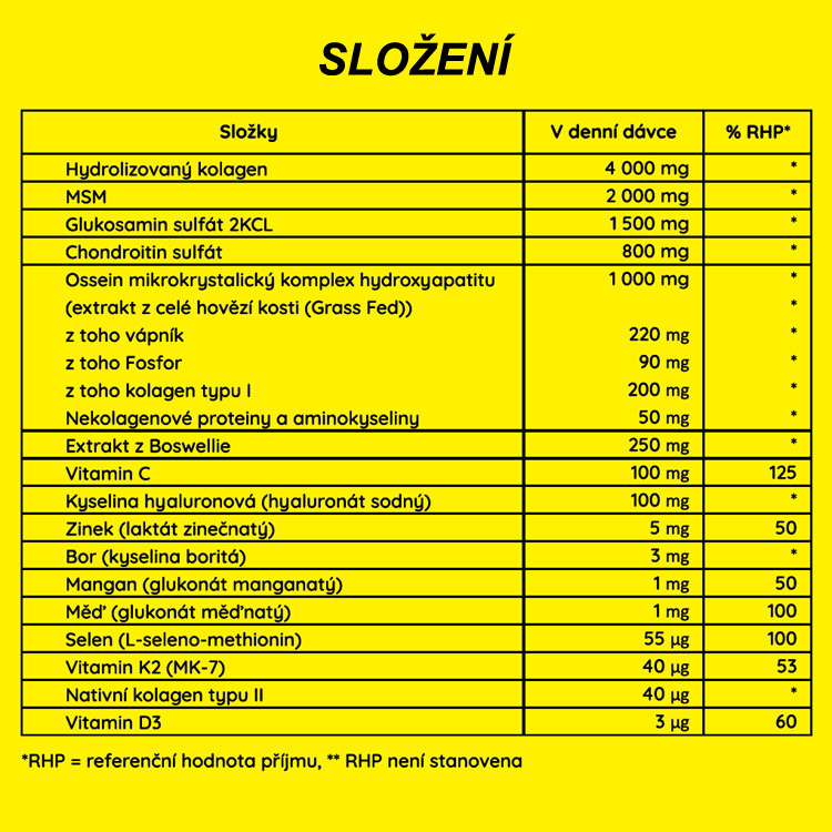 - Spektrum dobře vstřebatelných vitamínů a minerálních látek pro zdraví pohybového aparátu